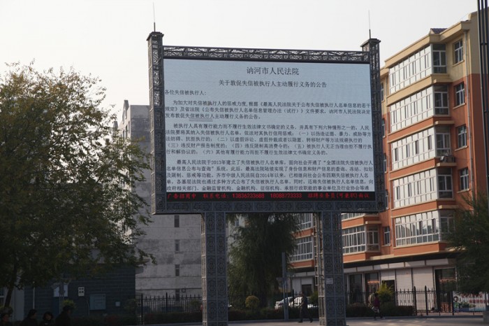 讷河市法院国庆假日在公共场所电子显示屏曝光“老赖”