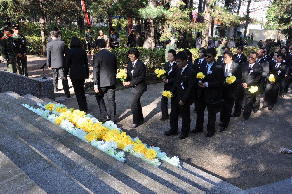 9月30日,在迎庆中华人民共和国成立67周年之际,伊春中级法院干警代表和社会各界代表720余人一起来到伊春烈士陵园开展“烈士纪念日” 公祭活动。在上午9时的公祭仪式上,参加公祭活动的全体人员齐唱国歌,庄严肃穆中全体人员向烈士默哀,少先队员献唱《我们是共产主义接班人》。在随后低回荡气的乐曲声中,武..