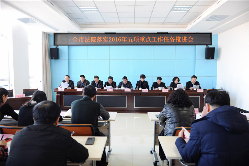 2月17日上午,齐齐哈尔市中级人民法院召开了全市法院落实2016年五项重点工作任务推进会。齐齐哈尔中院党组全体出席会议,中院各部门负责人、16个基层法院院长和相关工作负责人参加了此次会议。会议由党组成员、副院长徐江主持,党组书记、院长郝伟夫发表了重要讲话。会上,郝伟夫与齐齐哈尔中院审判业务主管领导以..