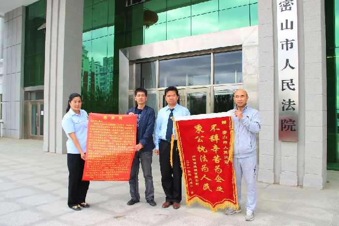 “谢谢法官们,谢谢你们为公司追回了890多万元的债款。”9月11日上午,牡丹江垦区兴凯湖机械有限公司的两位负责人专程来到密山法院,将一面写有“不辞辛苦为企业 、秉公执法为人民”的锦旗和一封感谢信送到了密山法院民二庭副庭长郑刚和法官娄培婷的手中,代表公司向民二庭全体法官们表达一份深深的谢意。牡丹江垦..