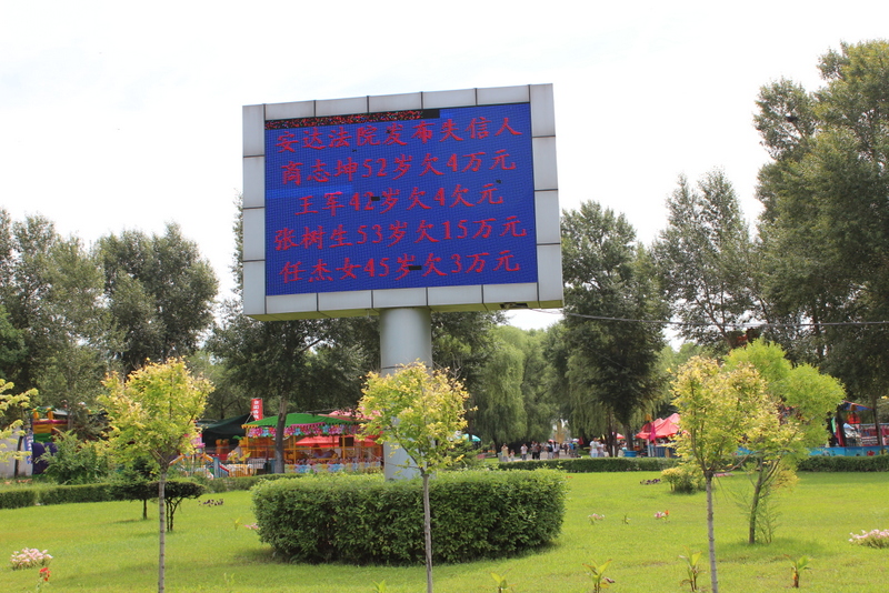 安达市法院利用公园大屏幕公布失信被执行人信息