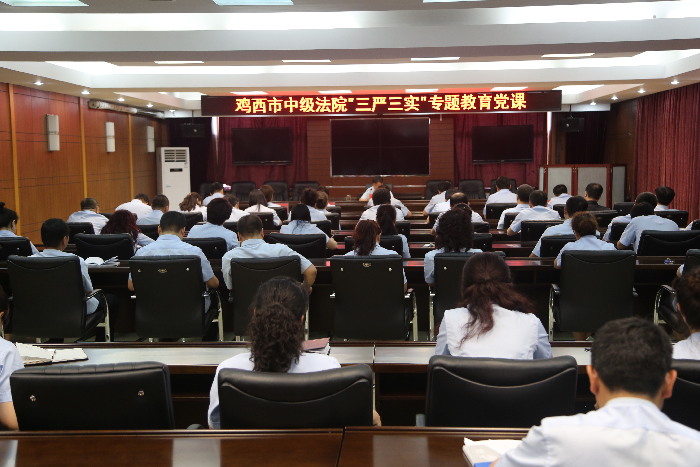 根据上级法院及鸡西市委开展“三严三实”专题教育部署要求,6月16日下午,鸡西中院举行“三严三实”专题教育活动,院党组书记、院长陈喜平以“践行‘三严三实’要求,锻造‘忠诚干净担当’优秀品质,树立鸡西法院司法为民公正司法新形象”为题,为全院副科级以领导干部上了一堂精彩生动的主题党课。 &..