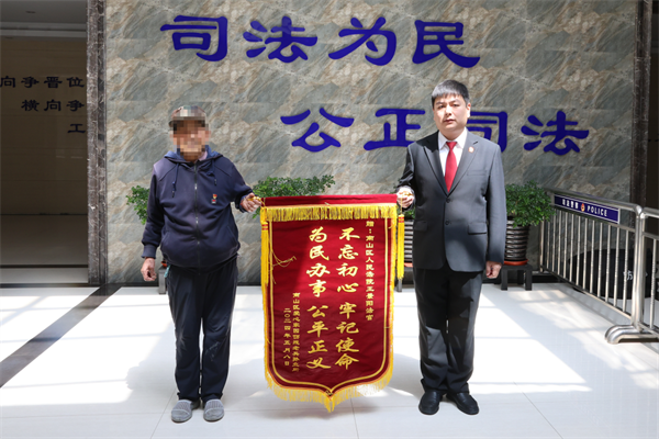 “不忘初心,牢记使命,为民办事,公平正义”一位年近八旬的老退伍军人激动的将这面锦旗送到了南山区人民法院行政审判庭王景阳法官手中。 “感谢王法官考虑到我们的实际情况,让我们足不出户就解决了这场纠纷,真正的为我们老百姓办实事,谢谢您!” &..