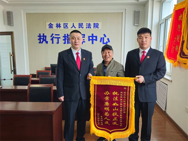 近日,伊春市金林区法院执行局收到一面锦旗,金字闪耀背后的笑容是申请执行人发自内心的感谢,是执行干警对每一起案件执行完毕的满足,更是人民群众对金林区法院执行工作的肯定。“终于找到你了”“等我穿下衣服”“欠款怎么履行?”“配合配合,现在就给,全给”近日,金林区法院执行干警在哈尔滨市通..