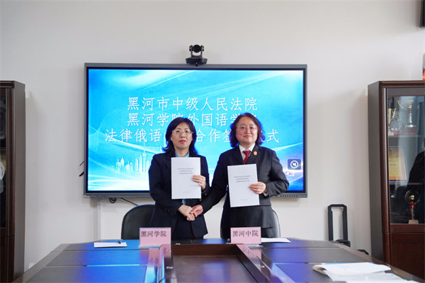 为进一步创新涉外法治人才培养机制,完善法律俄语实训体系,推进涉外法治建设,助力构筑向北开放新高地。近日,黑河中院与黑河学院举行法律俄语教学合作签约仪式。黑河中院专职审委刘红梅,黑河学院外国语学院院长孟繁红、党总支书记孙晓青,爱辉区人民法院副院长刘爱民,市区两级法院部分庭..