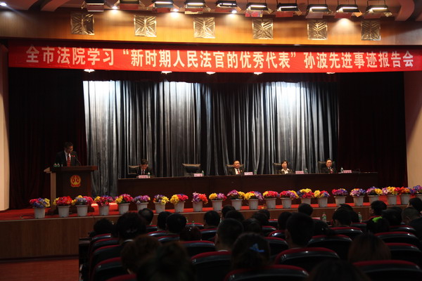 5月23日,鹤岗市中级人民法院举行了学习“新时期人民法官的优秀代表”孙波同志先进事迹报告会。鹤岗市市委常委、市委政法委书记王瑞,鹤岗市中级人民法院院长朱德臣和全市法院干警400多人聆听了报告。此次报告会旨在深入推进全市法院党的群众路线教育实践活动,广泛开展“远学焦裕禄、近学身边人”活动,大力宣传和..