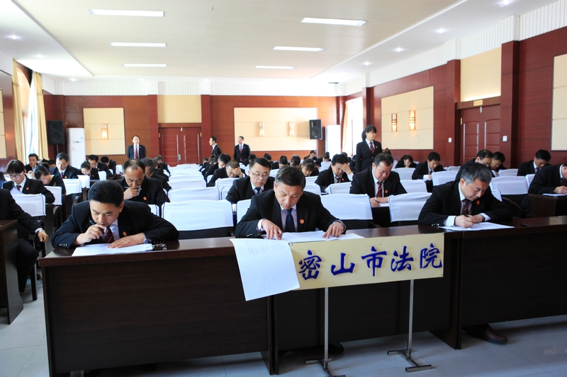 为切实提升干警的业务水平和执法能力,打造和培养一支高素质的法院队伍,4月23日,密山市人民法院组织开展2014年上半年业务练兵考试,业务庭室全体干警及主管领导共75人参加了考试。此次考试采取闭卷方式,分别对刑事、民事、商事、行政、执行、书记员六个方面进行考核,旨在通过考试巩固干警的理论业务知识,强化..