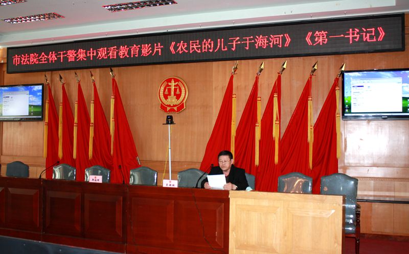 4月16日,齐齐哈尔市中院召开集中学习会议,传达了省、市委关于在党的群众路线教育实践活动中向于海河同志学习的文件精神及《齐齐哈尔市中级人民法院关于开展向于海河同志学习的活动方案》,并就开展具体活动进行了部署和要求,会后,组织干警观看了专题片《农民的儿子于海河》。齐市中院号召全院干警向于海河同志学习,..