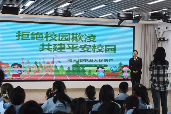 万物争春发,不肯待骄阳。为进一步筑牢校园安全防线,保障青少年身心健康,全力构建平安和谐的育人氛围,近日,黑河小学法治副校长走进校园,面向全校师生开展防范校园欺凌法治宣传活动。黑河中院未成年庭干警付雯雯以贴近生活的事例为主线进行授课,为在校师生详细讲解了什么是校园欺凌、校园欺凌的常见形式以及如..