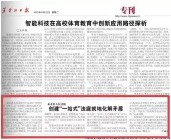 黑龙江日报刊发:泰来县人民法院创建“一站式”法庭就地化解矛盾