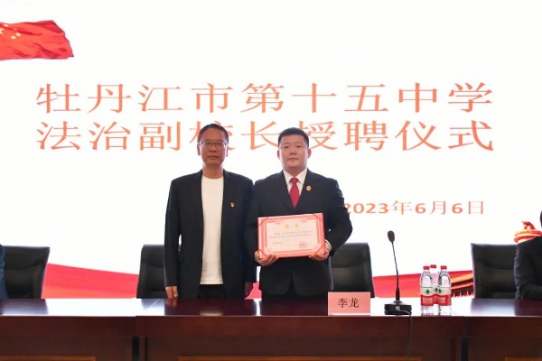 为进一步落实中小学法治副校长工作,加强未成年人司法保护,增强青少年法治意识和法治观念,6月6日下午,牡丹江中院与牡丹江市第十五中学共同开展“法治副校长”聘任仪式暨“法治进校园”宣讲活动。仪式现场,校党总支书记、校长王占权为牡丹江中院法官助理李龙颁发法治副校长聘书。授课中,李龙副校长结合近..
