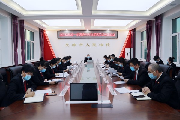12月8日,虎林市法院召开审判执行质效工作推进会,对审判执行质效工作再部署、再发动、再推进。会议传达了省法院《关于进一步做好2021年审判执行工作的意见》、通报了我院11月末各项审判质效情况及各团队结案率情况,各业务庭分析了本部门质效情况并做表态发言,审管办对审判质效考核指标进行分析说明。会议要求,..