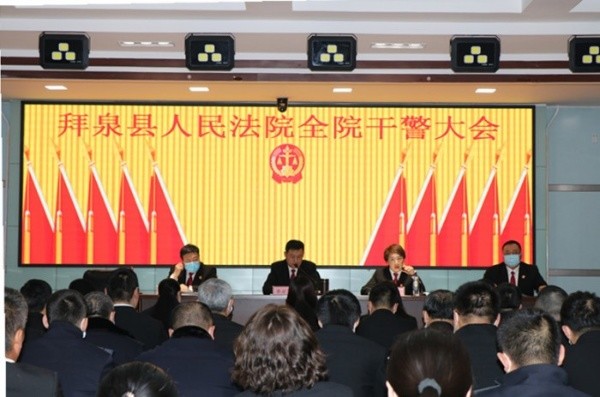 11月26日,拜泉县法院召开全院干警大会,传达、部署上级法院会议精神,落实审判质效任务,对照上级法院考核内容,部署审判质效考核工作。会议要求,全院上下要切实增强对绩效考核工作的紧迫感和责任感,对照上级法院“十个实质化”工作要求,对标对表,找差距、补短板,做好年底结案工作。在认真完成审判执行工作任..