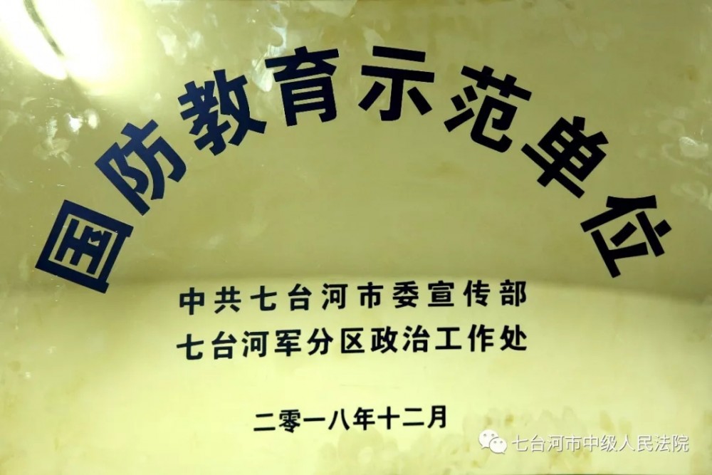 近日,由中共七台河市委宣传部和七台河军分区政治工作处开展的国防教育示范单位评选活动中,七台河中级人民法院荣获国防教育示范单位荣誉称号。七台河中院党组高度重视国防教育工作,以习近平中国特色社会主义思想和强军思想为指导,以爱国主义教育为主旋律,通过开展国防教育培训学习,增强干警国防教育意识和忧患..