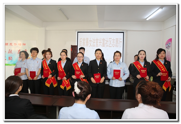 为加强《反家庭暴力法》宣传,有效预防和制止家庭暴力,保护家庭成员的合法权益,维护平等、和睦、文明的家庭关系,6月7日,由七台河市妇联和七台河中级法院联合组织的“女法官走基层”活动在新兴区兴富社区开展了反家暴女法官志愿者宣传服务。该市中级法院、新兴区法院20余名女法官志愿者参加了活动。