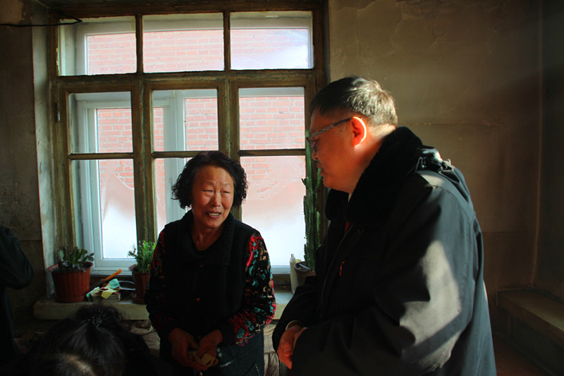 2017年1月17日,邹郅副院长带领志愿服务队,首先来到道里区敬老服务中心,为该中心的五保户老人们送去了大米、豆油等价值3000余元的慰问品,并与老人们亲切交谈,老人们纷纷表示,感谢法院,享受社会主义制度下的幸福生活。随后,邹郅副院长等一行人又来到新农镇团结村后胡家屯的车桂兰家中,车桂兰是低保户,家庭生活困难,儿子患有精神疾病,生活基本无法自理。副院长邹郅与其促膝交谈,详细了解了她的家庭状况和日常生活情况,代表院党组对其表示了深切慰问,并送去慰问金以及新春美好祝福。车桂兰表示,感谢道里区法院的帮助,感谢党、国家和社会的关怀。