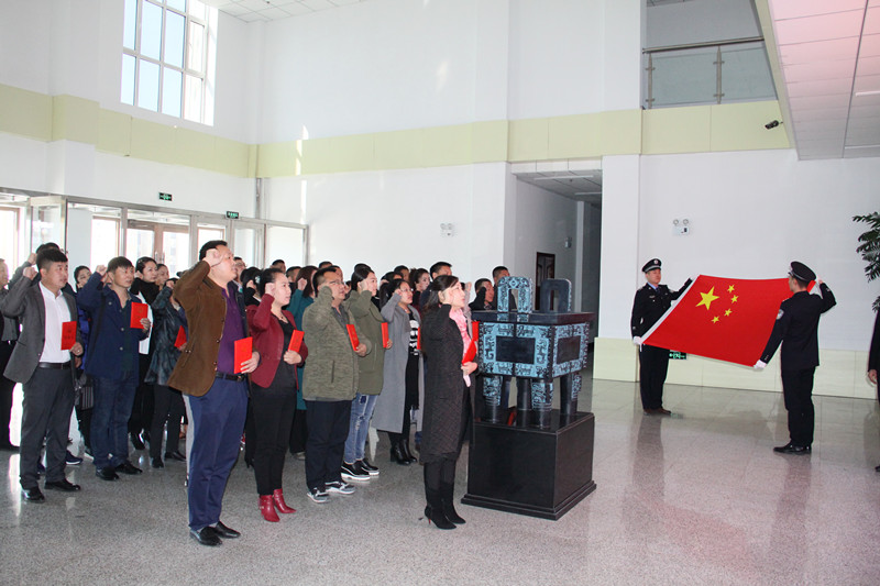 马继红宣读了56名人民陪审员的任职决定,并与孙宏斌等一起向新任命的人民陪审员现场颁发任命证书。紧接着,全体人民陪审员认真学习了《中华人民共和国人民陪审员宣誓规定(试行)》,在陪审员徐丽华的领誓下,面向鲜红的五星红旗,郑重地举起右手,宣读了人民陪审员誓词。孙宏斌对新任陪审员提出了相关要求和希望,要求人民陪审员提高思想认识,切实增强做好陪审工作的责任感和使命感,把司法为民、公正司法落实到所陪审的每一个案件当中,努力让人民群众感受到法律的公平正义。