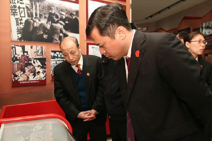 2013年3月29日,黑龙江省高级人民法院组织院机关干警到黑龙江省廉政教育基地参观学习。这是省法院开展的一次司法廉洁教育活动。今年以来,省院注重强化司法廉洁教育,坚持“每季一课”、“每月一案”教育,定期开展廉政签约责任教育、案例警示教育、节庆谈话教育、问题诫勉教育、现场说法教育的五项教育活动,突出廉洁教育的经常性、针对性和直观性,认真落实反腐倡廉工作方针。图为省法院班子成员和部分院机关干警在廉政教育基地观看廉政教育图片。