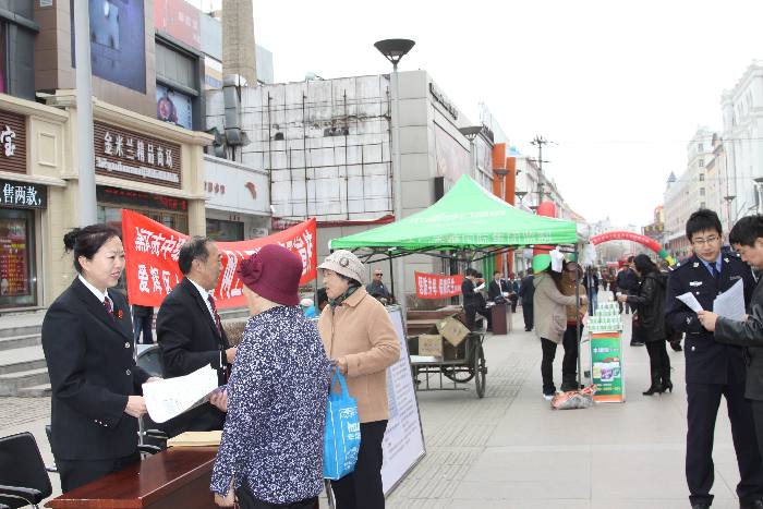 为了进一步落实司法便民 “七项承诺”,方便群众诉讼,4月27日,黑河市中级人民法院和爱辉区法院法官在黑河市中央大街进行了网上预约立案及诉讼风险提示的宣传活动。