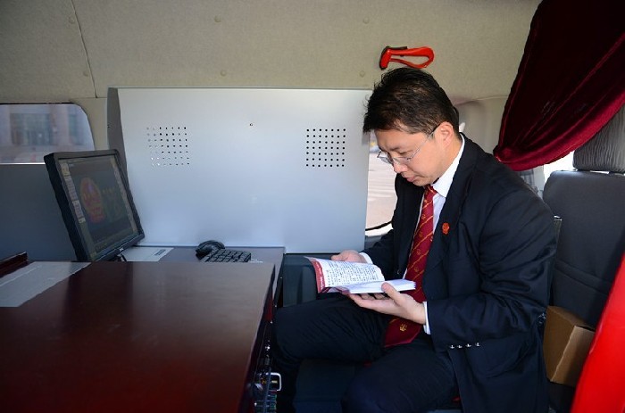 继法官综合评价系统、电子二维码防伪签章系统、法官办案智能辅助系统、院长综合指挥系统等软件投入使用后,今天,齐齐哈尔市铁锋区人民法院的现代化“兵器库”中又新添一件“重武器”,它就是铁锋法院投入近30万元刚刚购置的全市首台多功能巡回审判车。