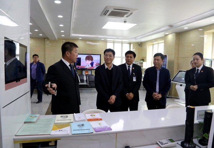 4月17日,省法院窗口服务集中治理工作组在审判委员会专职委员李大伟的带领下,深入鸡西两级法院开展窗口服务集中治理专项检查。鸡西中院党组书记、院长王双近陪同检查。