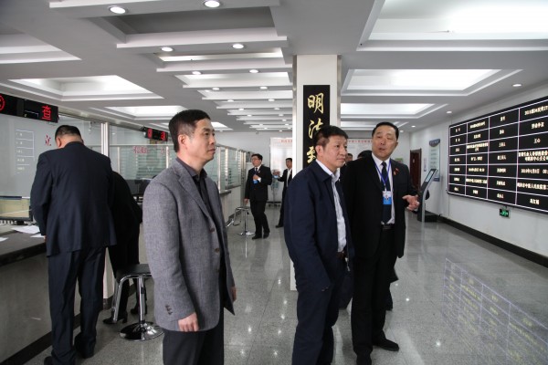 在鹤岗中院诉讼服务中心,解维全一行现场查看了各功能区设置和使用情况,查验了便民查询机等服务设施运行状况,翻阅了《诉讼指南》等自助诉讼资料,并就“四零”承诺服务的相关内容与工作人员进行了询问交流;在市中院执行指挥中心,工作组通过重要点位监控系统实时查看了两级法院诉讼服务大厅工作状态,全面了解干警的工作作风、精神面貌、接待服务等情况。