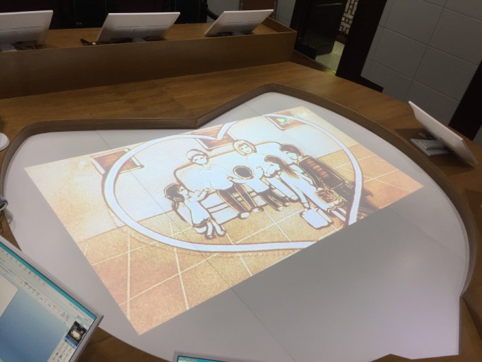 打造心形法庭,提升情感共鸣。法庭内部以白色和黄色为主色调,中国家庭式装修风格,淡化了法庭的威严与凌厉,增添一份温馨与亲近之感。法庭中间是一张心形的审判桌,中心设置的电子屏循环播放家庭生活温馨画面的沙画纪录片,让法庭成为家事案件调解的主要阵地。