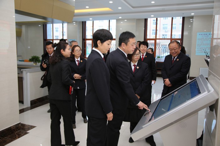 在诉讼服务中心,大家对立案叫号机、诉讼查询一体机等便民服务终端兴趣浓厚,称赞智慧法院为群众提供了高效、便捷的司法服务。