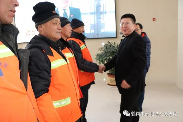 代院长安力与环卫工人们一一握手,“你们是城市的美容师 ,法院就是你们的歇脚点、就是你们的家”。