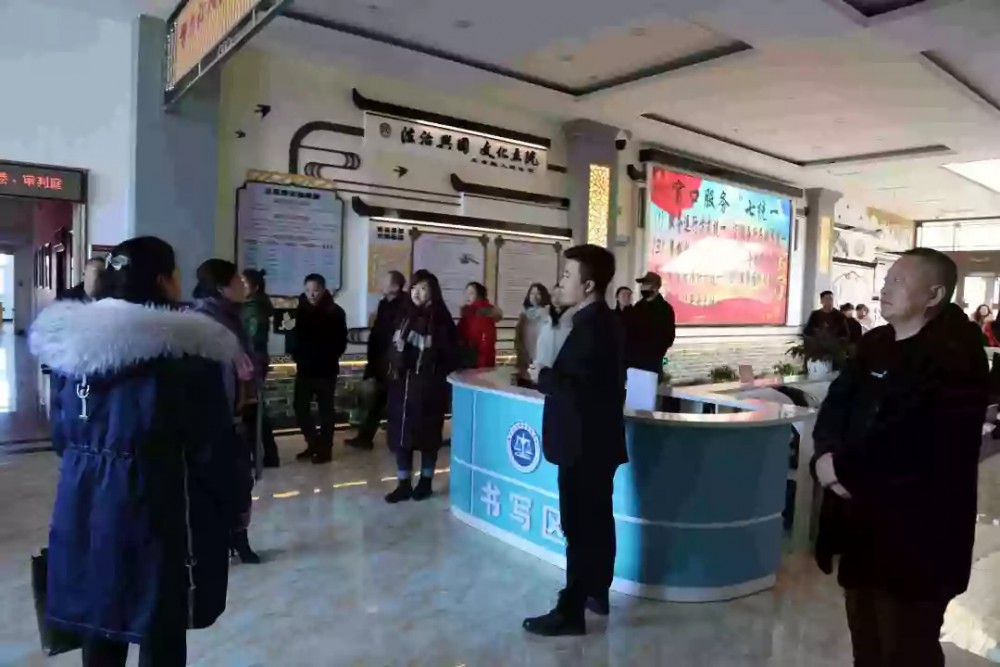 来访一行在引导员的指引下先后参观了诉讼服务中心、科技法庭、家事审判庭、执行指挥中心、图书阅览室、法警训练室。