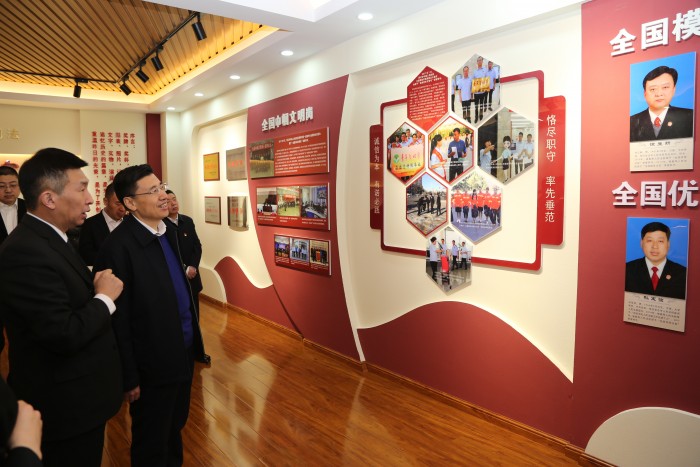 在解说员的引领下,市委巡察办领导一行先后参观了主楼大厅、新闻宣传中心、文化学习中心、廉政文化长廊、党群活动中心等,并观看了绥化中院党建工作专题片。