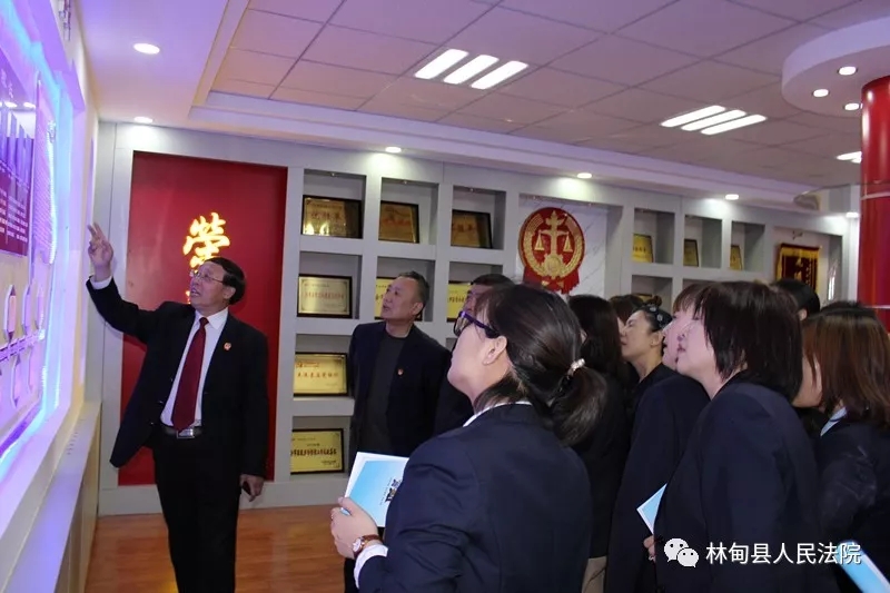 在诉讼服务中心,林甸法院党组成员、副院长石景川详细介绍了诉讼服务中心的主要职能、功能设置、信息化建设及司法便民举措等情况,并给大家发放了扫黑除恶宣传手册。大家对诉讼服务中心“一站式”服务模式有了更全面的了解。在审判科技法庭,大家了解了法院庭审活动的各个流程和环节,知道了庭审直播系统的作用,切身感受到了“阳光司法”的规范、公开与透明。经过文化长廊,职工们在每块展板前驻足观看,并不时向石院长提问,驻足抬头之间感受打官司不求人精神。在执行指挥中心,石景川介绍了远程集中指挥、执行力量统一调度、执行资料查阅等功能,并向大家演示了执行指挥中心等信息化建设成果的运用,职工们现场体验到“执行让老赖无所遁形”的精神。在荣誉室,职工们参观了法院所获得荣誉奖牌、奖状,法院的基本建设情况、法院的历史图板等。