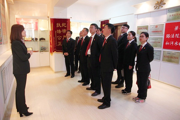 驻足文化长廊,讲解员介绍了近年来哈铁两级法院的党建工作、队伍建设和文化建设情况。
