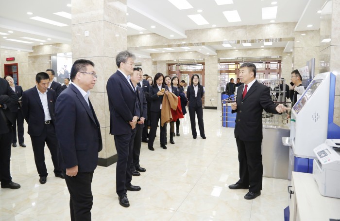 绥化分行的来宾们依次参观了诉讼服务中心、审判法庭、主楼大厅、文化长廊、党群活动中心、院史馆、荣誉室、文化学习中心。