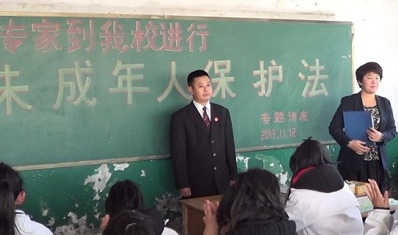11月13日,依兰县人民法院结合自身工作实际,组织法律知识丰富、业务能力强的同志,针对学生的年龄特点,采取以案讲法的形式,对《未成年人保护法》和《侵权责任法》的相关规定以及对未成年人身心健康发展有关的事项进行了讲解,使学生初步了解和掌握了法律内涵和运用法律维护自身权益的必要性、可行性,培养了学生知法懂法守法的自觉性,有效地维护了校园的和谐稳定。图为两名法官进行校园讲座。