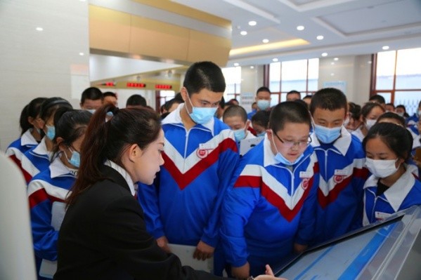 活动中,讲解员引领同学们参观了诉讼服务中心、审判法庭、执行指挥中心、廉政文化厅等场所。在诉讼服务中心,讲解员详细介绍了诉讼服务大厅的设施和功能,重点讲解了立案审判流程;在多功能审判法庭,同学们观看了法院工作宣传片,感受“智慧”法院建设成果;在廉政文化厅宪法墙前,同学们整齐列队,庄严向宪法宣誓,在心中种下法治精神和社会责任的种子。