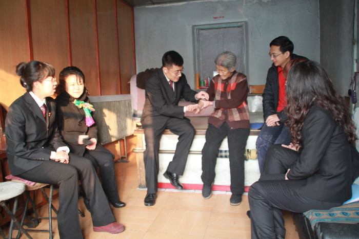 法院干警在齐桂兰老人家询问老人的生活以及身体情况