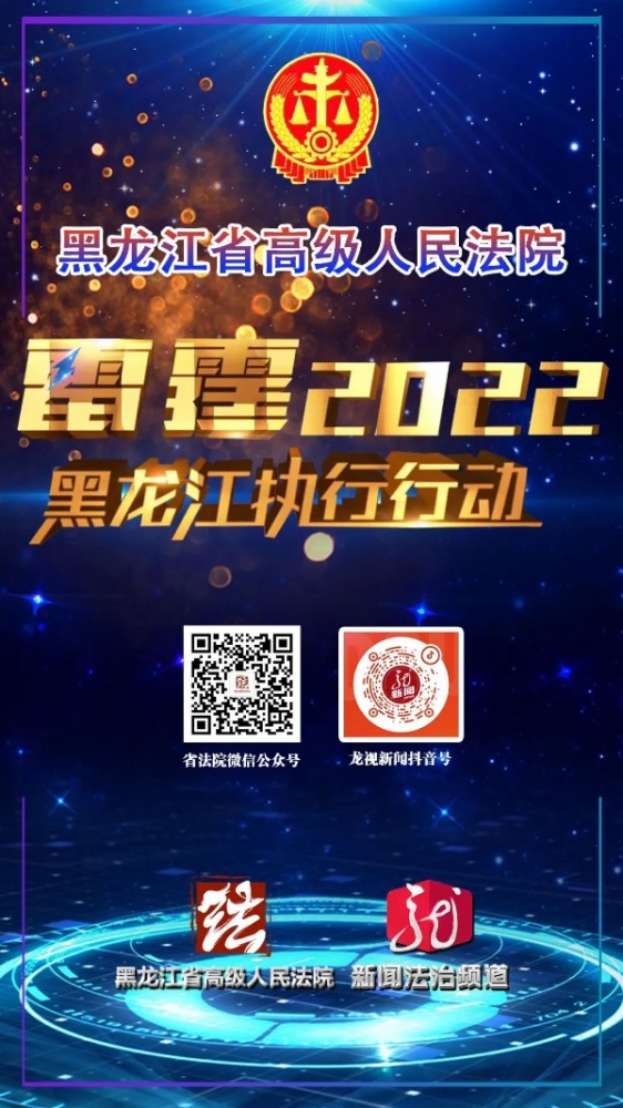 提质效、转作风优环境、惩老赖“雷霆2022”“亮剑”拒执行为服务保障“六个龙江”持续推进“能力作风建设年”活动走深走实 让人民群众“执行不求人” 5月25日20:00就在明天!聚焦黑龙江广播电视台新闻法治频道黑龙江法院 “雷霆2022”执行行动我们不见不散!