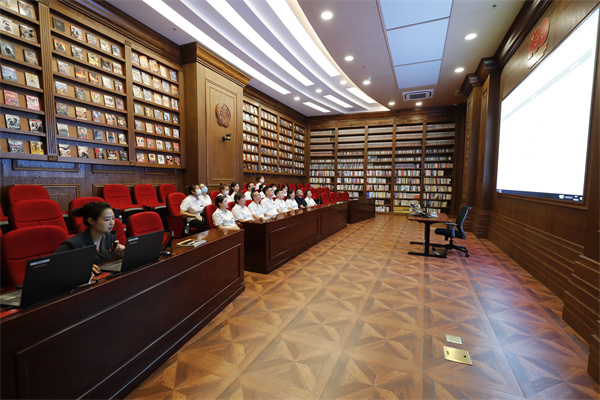 2022年7月12日,中国职工保险互助会哈尔滨办事处的员工走进黑龙江省高级人民法院参加第317次“公众开放日”活动。