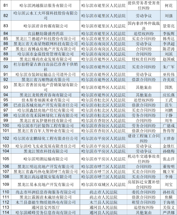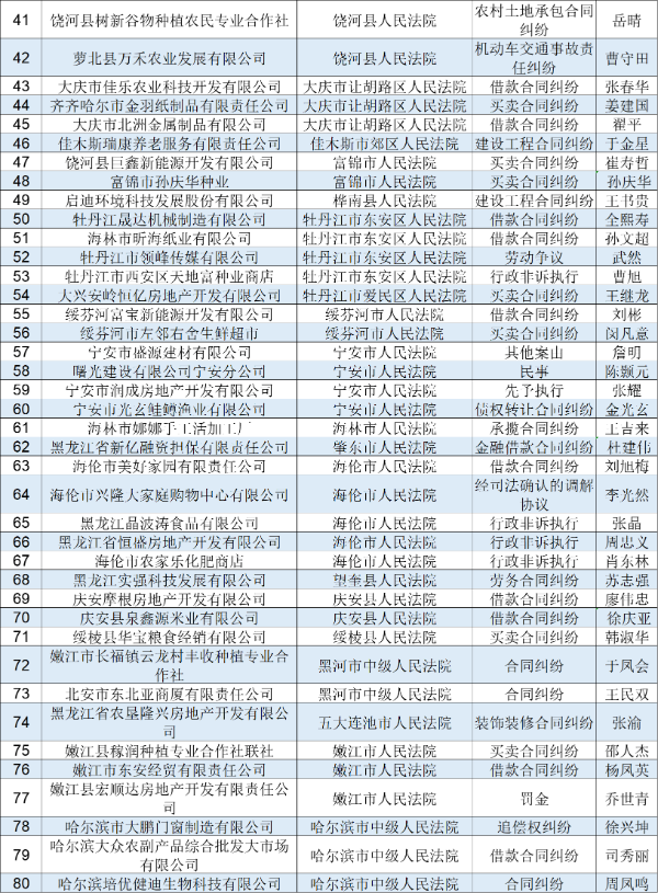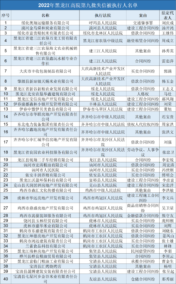 2022年黑龙江高院第九批失信被执行人名单