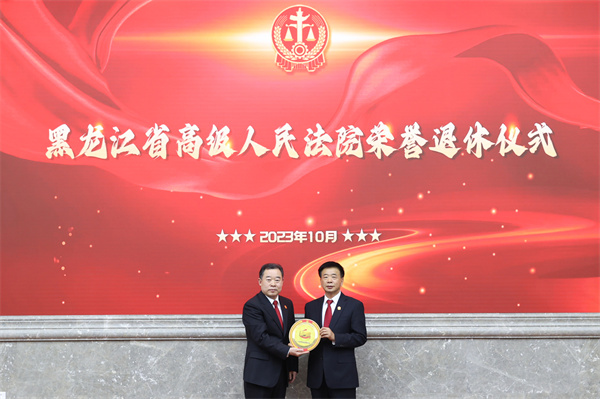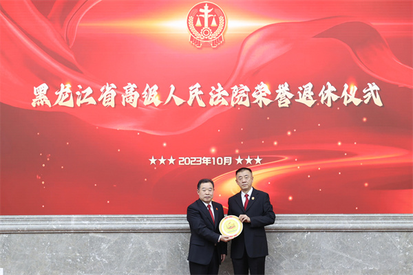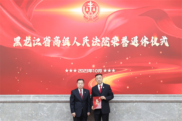 省法院党组成员、副院长王启胜主持荣誉退休仪式。省法院院领导,院机关相关部门负责同志及部分干警代表参加荣退仪式。
