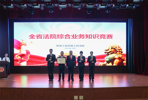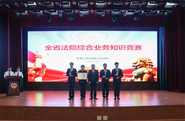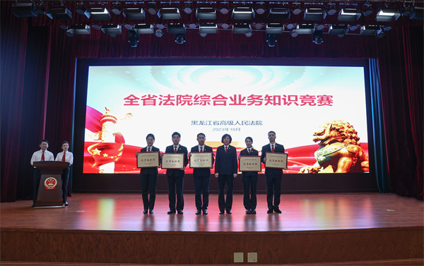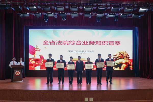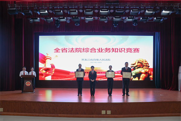 大赛历时3个月,分为初赛、半决赛、决赛三个阶段进行。在初赛过程中,各中院积极筹备、认真组织,全省法院干警共计400余人参加初赛,经过激烈的角逐,来自全省法院17个代表队共68名选手脱颖而出;在半决赛过程中,参赛选手从容镇定,答题流畅,你追我赶,奋勇争先;在决赛过程中,大家风采展示,积极踊跃,抢答题环节选手们反应敏捷,配合默契,风险挑战环节大家沉着冷静、斗智斗勇,附加赛环节铁路代表队和省法院代表队更是经过20余轮比拼,才决出胜负,台上精彩纷呈,台下好评如潮。最终,铁路代表队、省法院代表队、伊春代表队、佳木斯代表队、黑河代表队、双鸭山代表队获前6名。