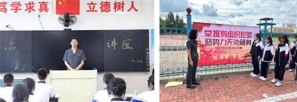 双鸭山中院孙俐兴、友谊县法院王慧铭走进中小学,通过案例分析、播放宣传片和现场互动等方式,为学生讲授《中华人民共和国反有组织犯罪法》,自觉抵制黑恶势力侵害内容,鼓励学生在受到侵害时积极报警求助,远离黑恶势力侵害。