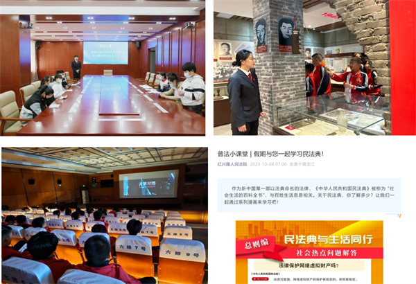 本次开学季,多地法院强化创新,变灌输式法治宣讲为亲历性体验教学。哈尔滨铁路法院、佳木斯铁路法院等100余家法院开展200余次公众开放日活动。鸡西中院持续面向中小学校开展法治实践活动,龙江县法院、大庆市萨尔图区法院组织学生庭审观摩,“零距离”“沉浸式”感受司法力量。大兴安岭地区加格达奇区法院、抚远市法院组织学生开展法治辩论赛,通过思辨加深学生对法律概念的理解,感受法律的魅力。红兴隆法院开设线上普法小课堂,制作普法漫画,以生动的方式激发学生学法兴趣,增强学法用法主动性。北安市法院在公众号“北法小桔灯”上开设未法微讲堂,为学生提供系列性未成年人法律知识读库。黑河市爱辉区法院将红色主题教育与法治教育相融合,带领学生参观科技法庭、圆桌法庭,观看法治微电影《未来可期》。