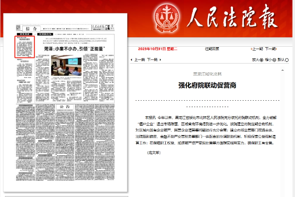 《人民法院报》:黑龙江绥化北林 强化府院联动促营商