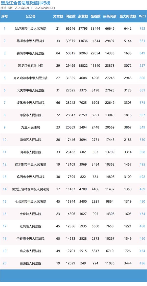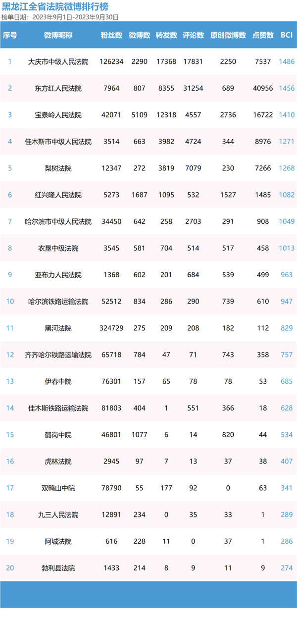 来了!2023年第三季度双微榜单,来了!黑龙江法院系统2023年官方微信、微博第三季度榜单火热出炉!一起来看看吧!