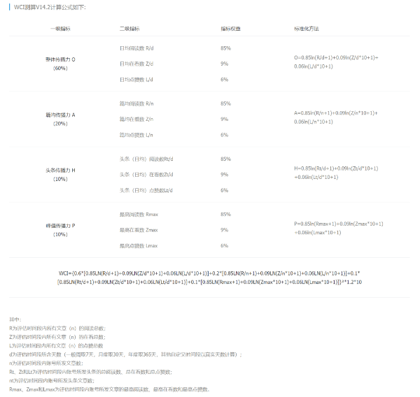 榜单WCI计算方法