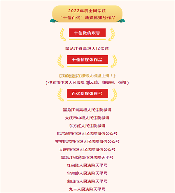 黑龙江法院喜提多项大奖!“金法槌奖”“十佳百优”评选揭晓!