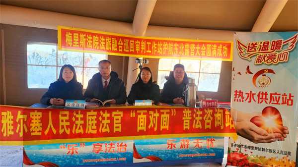 将法治宣传与旅游发展紧密结合,齐齐哈尔市梅里斯区法院始终坚持“绿水青山就是金山银山,冰天雪地也是金山银山”的理念,持续传递司法温度,以司法之力护航冰雪旅游,不断提升齐齐哈尔旅游品牌知名度和影响力,助推齐齐哈尔市旅游健康发展,努力为冰雪经济发展贡献出司法力量。