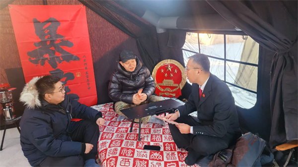 在银装素裹的冬日里,一场别开生面的普法宣传活动在哈拉新村库木勒草原拉开帷幕。梅里斯达斡尔族区人民法院党支部走进哈拉新村大草原,开展以“法律融合巡回审判工作站护航东北露营”为主题的法治宣传活动,将诉讼服务不断向前延伸,助力“冰天雪地”向“金山银山”持续健康发展。